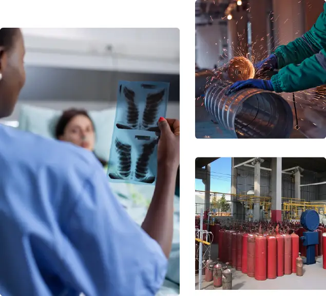 Quando combinado ao Oxigênio, gera uma chama extremamente quente, sendo amplamente utilizado em soldagem, corte, brasagem, tratamento térmico e metalização, garantindo precisão, eficiência e durabilidade nos processos.