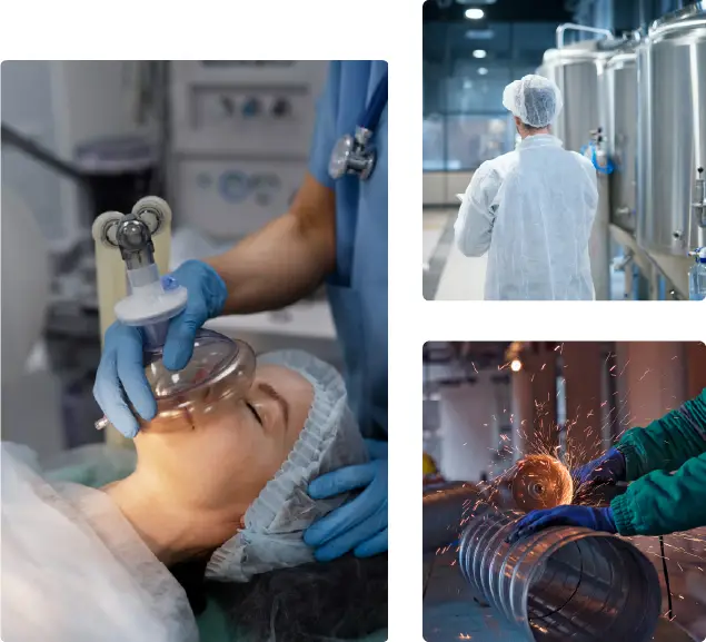 • Hospitalar e Medicinal: suporte à vida em terapias respiratórias, anestesias, ventilação mecânica e emergências médicas.